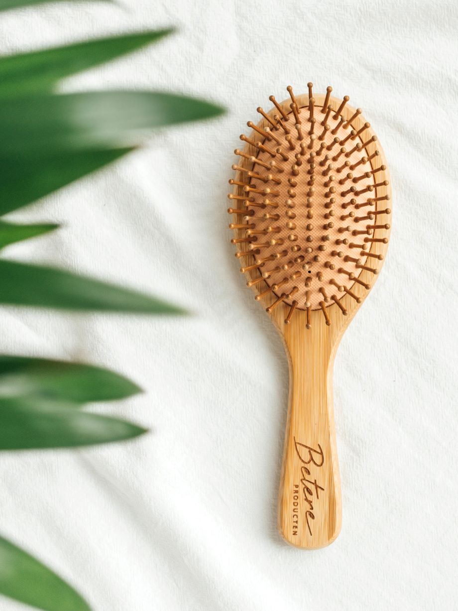 De bamboe haarborstel van Betere Producten biedt een duurzame en stijlvolle manier om je haar te verzorgen. Gemaakt van 100% bamboe met een natuurlijk rubberen kussen, is deze borstel geschikt voor alle haartypes, van lang en sterk tot krullend. De borstel ontwart het haar moeiteloos en is antistatisch, waardoor je haar er altijd prachtig uitziet. Voor extra hygiëne kun je de borstel na gebruik in het bijgeleverde opbergzakje doen. Een slimme keuze voor een verantwoorde haarverzorging—goed voor jou en de aarde!