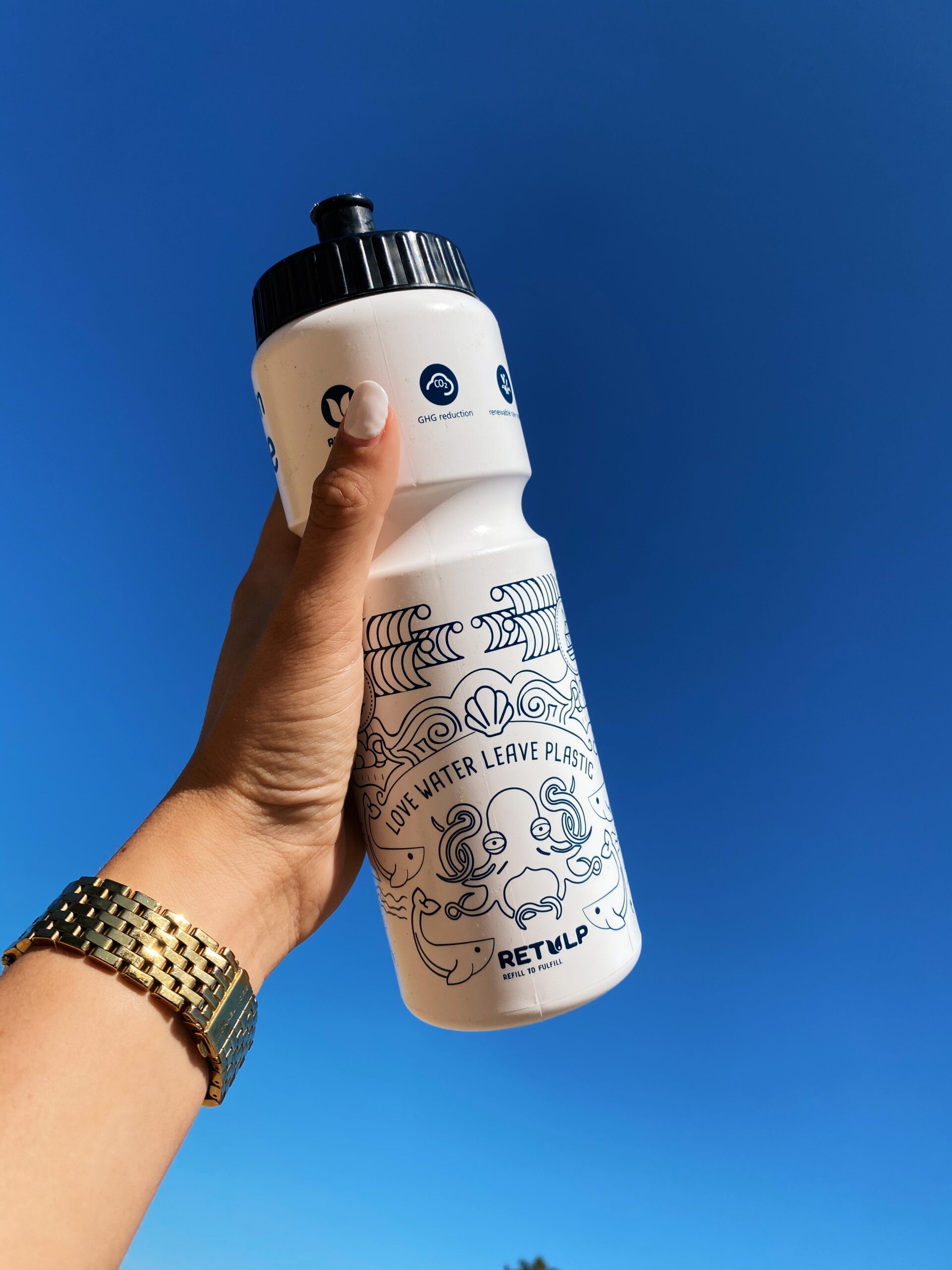 De Retulp bidons zijn gemaakt van het duurzame materiaal suikerriet. Dit is een hernieuwbare grondstof die CO2 uitstoot verminderd. Dit maakt de bio bidons milieuvriendelijk en praktisch voor dagelijks gebruik. De bidon smaakt niet naar plastic en geeft geen geur af. Gebruik de sportbidon tijdens fitness of als fietsbidon. De bidons passen in iedere bidonhouder. De Retulp bidon is volledig BPA-vrij en voedselveilig. De Retulp bidons hebben een unieke print met oceaan thema!