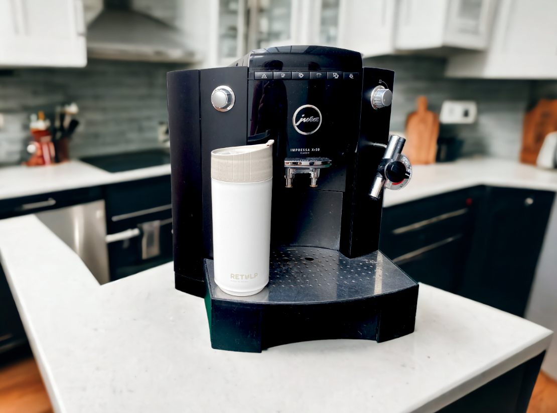 De Retulp Bio Premium Cup is een dubbelwandige koffiebeker to go. Deze koffiebeker is gemaakt van restmateriaal wat vrij komt bij de winning van suikerriet en wordt verstuurd in een gerecyclede verpakking, dit maakt de Bio Premium Cup een duurzame beker. Deze koffiebeker wordt geproduceerd in Duitsland en is in Nederland ontworpen. De Bio Premium Cup is dubbelwandig en heeft een binnenbeker die uitneembaar is. Hierdoor is deze gemakkelijk af te wassen met de hand of de vaatwasser. Daarnaast is het aangenaam om vast te houden, zelfs met kokend water in de beker. De dop van de beker is voorzien van een afsluiting, waardoor dit een perfecte koffiebeker is voor onderweg. Bovendien past deze koffiebeker ook in de autohouder.