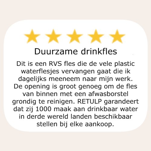 - Waterdonatie bij iedere verkochte duurzame Retulp fles