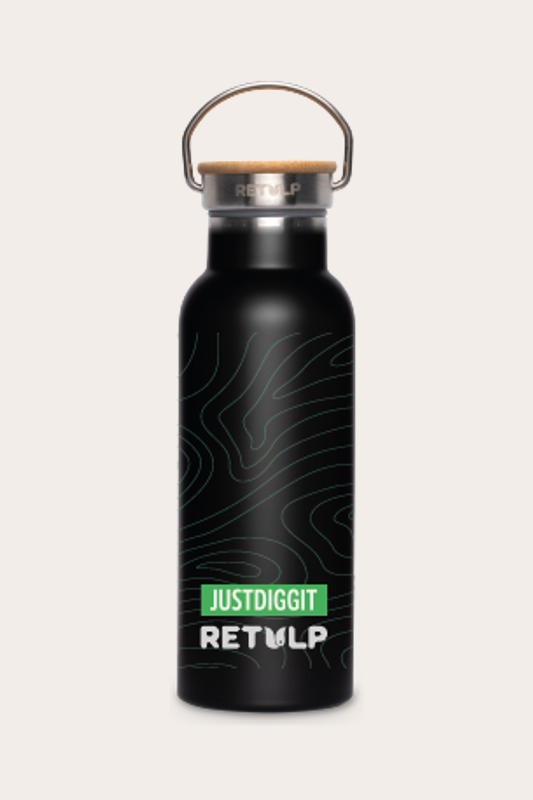 De Justdiggit x Retulp Thermos 500ml is een thermosfles van dubbelwandig RVS met een RVS dop voortgekomen uit een unieke samenwerking met Justdiggit. Water en dranken uit een Retulp thermosfles smaken beter omdat er geen smaakoverdracht tussen de drank en het materiaal plaatsvindt. Een isolerende fles is een ideale upgrade voor degene die nooit meer zonder zijn fles op stap gaat. Nu kun je je water en andere drank ook lekker fris of juist warm houden. Ideaal voor de winter dus en een aanwinst op je (flex)werkplek zodat je jezelf kan hydrateren.